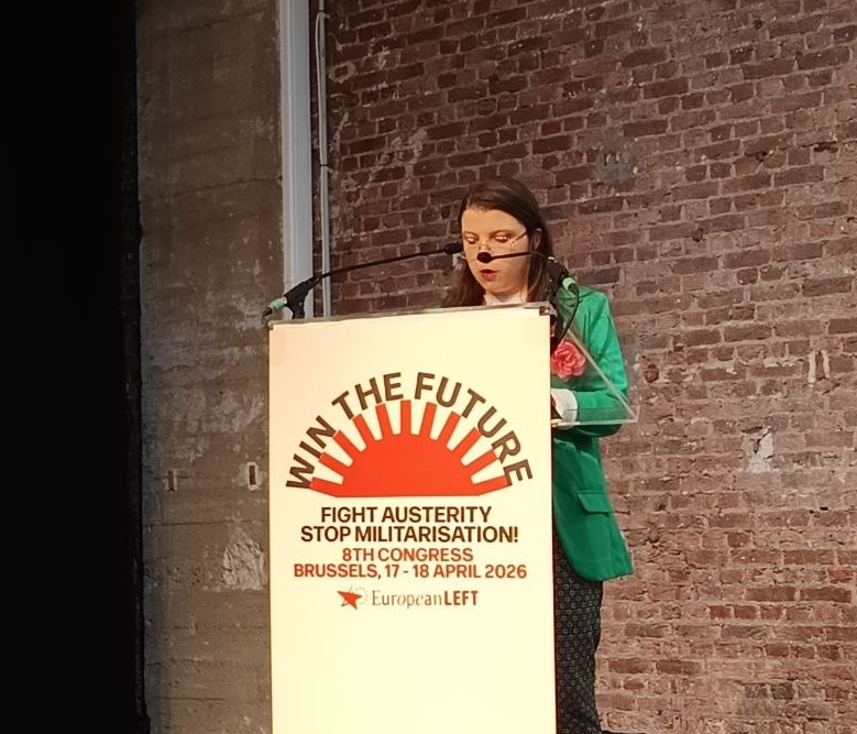 Ingrid Degrott a pris la parole samedi 18 avril 2026 au 8ème congrès du Parti de la Gauche Européenne à Bruxelles, au nom de la Gauche Républicaine et Socialiste