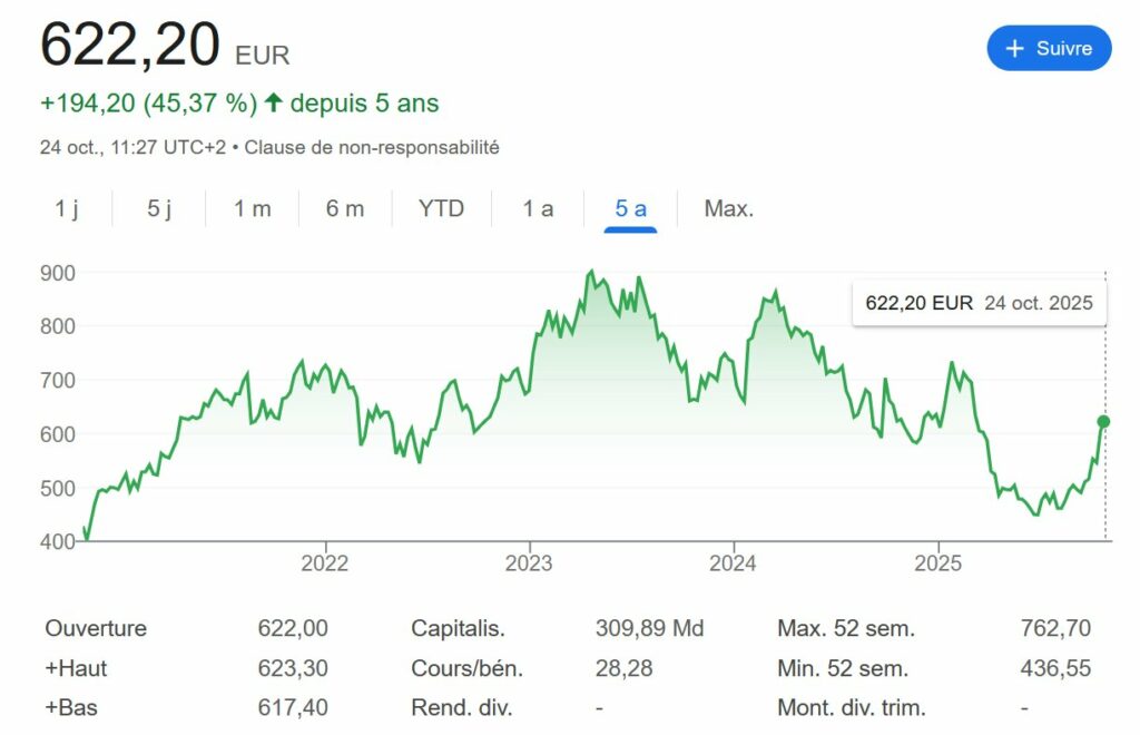 Ce n’est pas le cas de LVMH qui distribue 13 euros par action. Avec un cours d’environ 600 euros, elle redistribue plus de 2% de sa valeur chaque année. Donc Bernard a de quoi payer l’impôt.